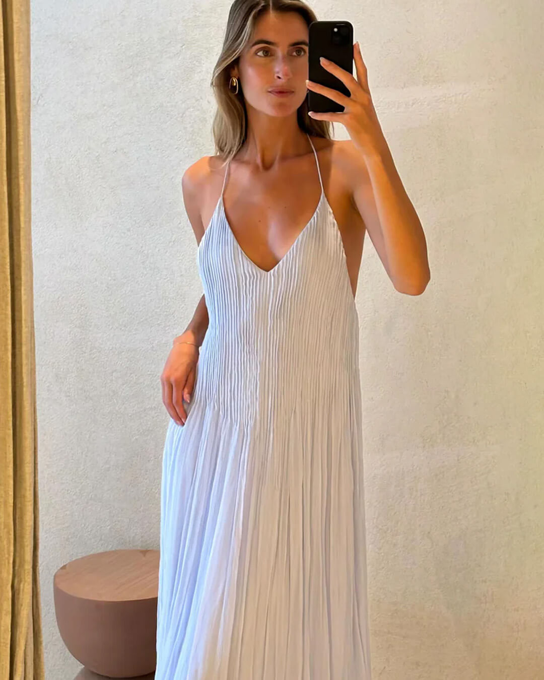 Erlebe saisonale Eleganz neu mit dem Anna Rückenfreien Maxikleid – ein atemberaubendes Stück für die moderne Romantikerin. Perfekt für edle Frühlingsgartenfeste oder goldene Sommerabende am Strand, vereint dieses Kleid mühelosen Tragekomfort mit modischer Ausstrahlung. Die fließende A-Linie sorgt bei jedem Schritt für anmutige Bewegung, während das gewagte, rückenfreie Design alle Blicke auf sich zieht. Mit einem eleganten V-Ausschnitt und ärmellosem Schnitt ist es aus hochwertigem, leichtem Stoff gefertigt, der Dich auch an warmen Tagen angenehm kühl hält. Ob bei einer Hochzeit am Meer oder einem stilvollen Brunch – das Anna Maxikleid in sanftem Himmelblau ist die beste Wahl für zeitlose Raffinesse. Mach jeden Auftritt unvergesslich mit einem Kleid, das von Luxus und weiblichem Charme erzählt.