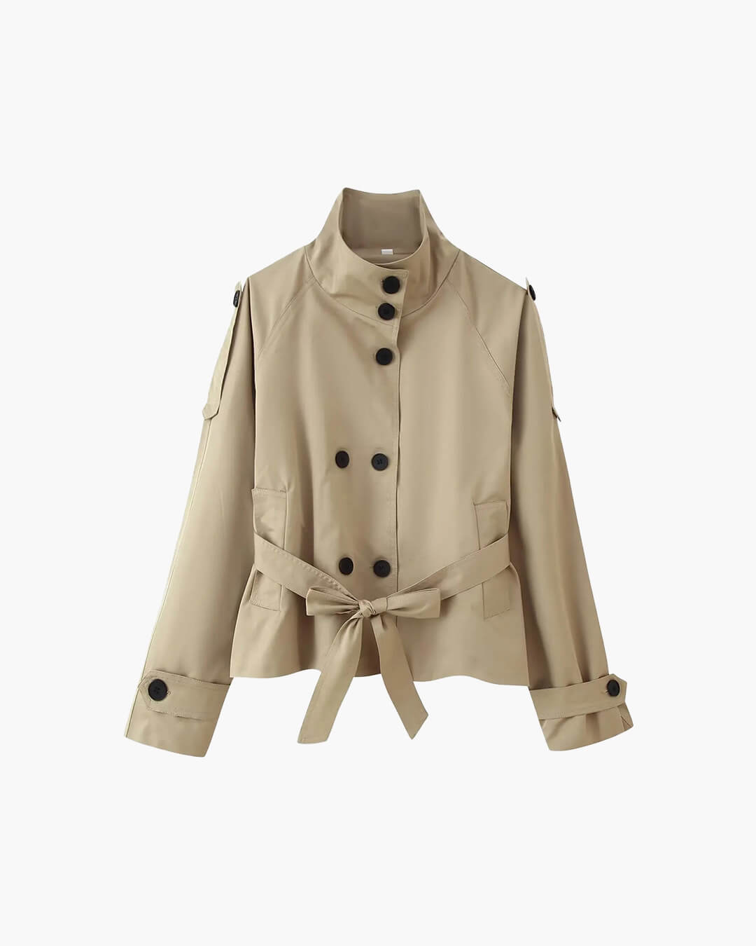 Taglio corto e raffinato: L’orlo moderno e corto offre una rivisitazione fresca del trench tradizionale, perfetto da abbinare a pantaloni a vita alta.