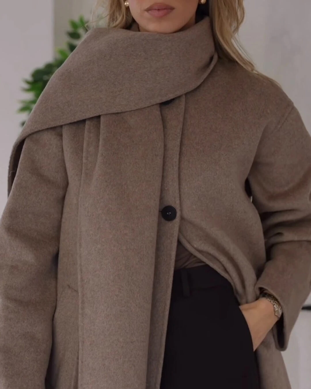 Dieser schicke Cecille Damenmantel aus Kunstwolle mit Schal vereint Vintage-Charme mit moderner Funktionalität und ist die perfekte Ergänzung für Deine Herbst- und Wintergarderobe. Mit einer einzigartigen Schal-Dekoration und einem bequemen Rundhalsausschnitt ist dieser langärmelige Mantel ideal zum Überziehen über Deine Lieblingsoutfits. Genieße stilvolle Damenmode, hochwertige Materialien und optimalen Tragekomfort – der perfekte Mantel für modebewusste Frauen, die Wert auf Qualität und Design legen.